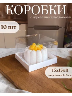 Коробки для торта бенто 15х15х11 с подложками 10 шт