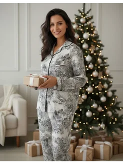 Пижама со штанами и рубашкой хлопковая с длинным рукавом