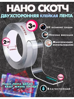 Двухсторонний скотч крепкий узкий, нано скотч 2см 3 м