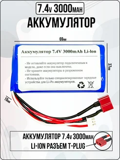 Аккумулятор для радиоуправляемой машинки 7.4v 3000mAh Li-Ion
