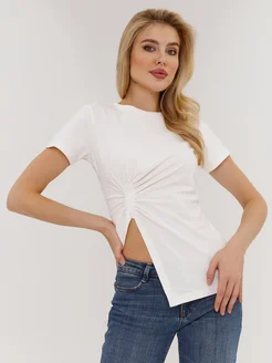 Футболка асимметричная с вырезом однотонная