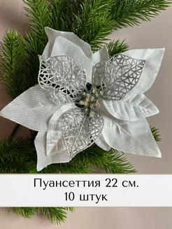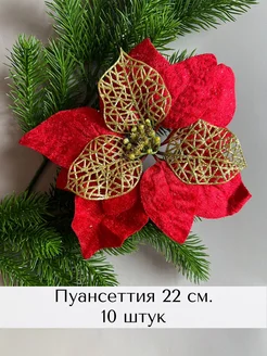 Цветок пуансеттия искусственная на елку на новый год 10 штук