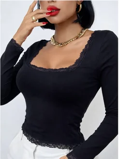 Лонгслив с кружевом облегающий