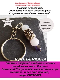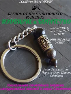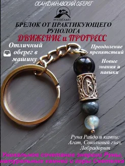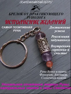 Брелок с руной Феху и натуральным гранатом и цитрином