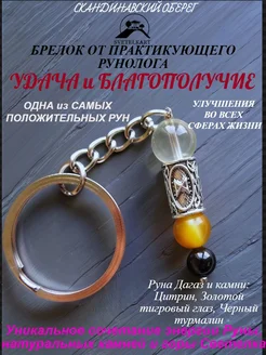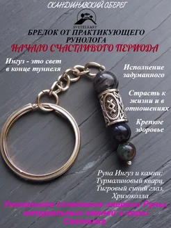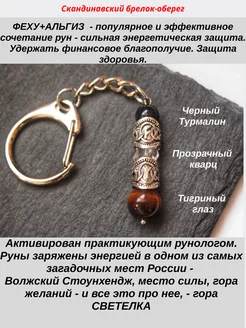 Брелок с руной Феху Альгиз и натуральным тигровым глазом