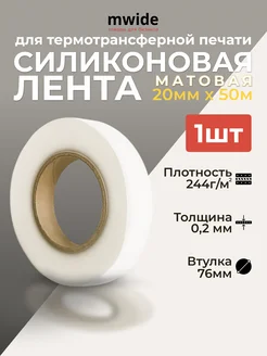 Силиконовая лента 20 мм х50м, 244 г м² матовая 1 шт