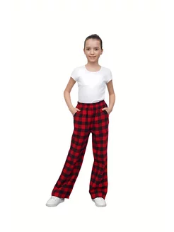 Брюки для девочки домашние в клетку на резинке красные