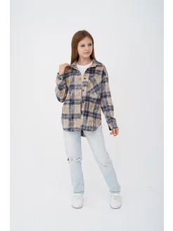 Рубашка варенка для девочки в клетку оверсайз