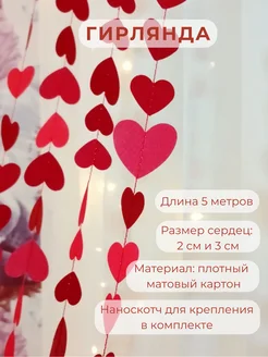 Гирлянда Сердца размером 2 см и 3 см красная