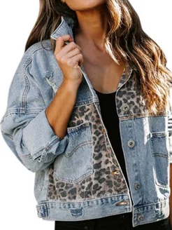 Рубашка куртка джинсовая оверсайз с леопардовым принтом