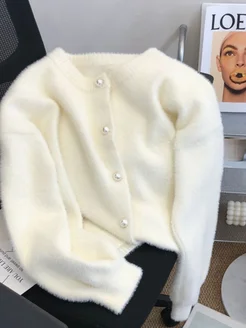 Кардиган на пуговицах пушистый укороченный
