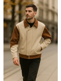 Куртка бомбер демисезонная замшевая с воротником