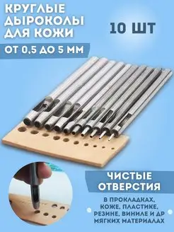 Набор пробойников для кожи 10 шт, круглые дыроколы