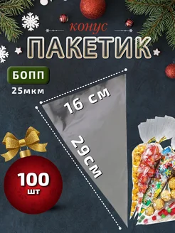 Подарочный пакет конус для сладостей 16х29см 100шт 25мкм