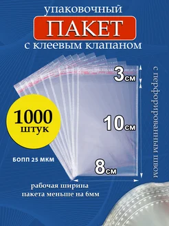 Упаковочные пакеты БОПП с клеевым клапаном 8х10 3 см 1000шт