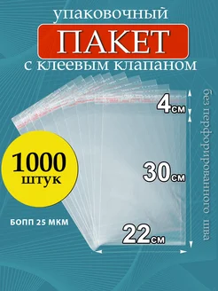 Упаковочные пакеты БОПП с клеевым клапаном 22х30 4см 25мкм