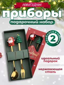 Новогодний набор десертных приборов ложка и вилка 2 штуки