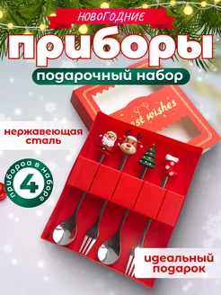 Новогодний набор десертных ложек и вилок с декором 4 штуки