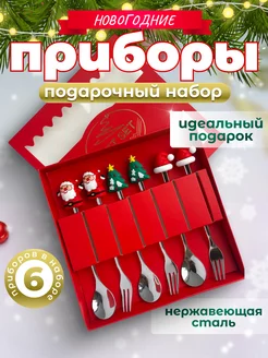 Новогодний набор десертных ложек и вилок с декором 6 штук