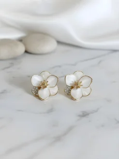 Серьги женские бижутерия, цветы с эмалью и фианитами