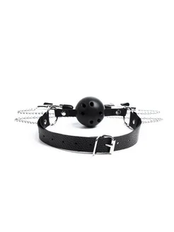 Кляп,кожа, с зажимами для сосков, металл,черный