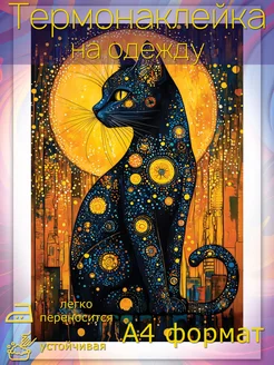Термонаклейка для одежды Чёрная кошка на фоне луны