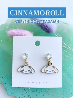 Cinnamoroll серьги-гвоздики со стразами с подвеской