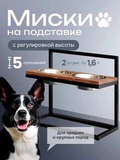 Миска двойная для собак на подставке регулируемая