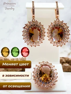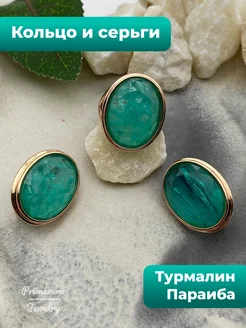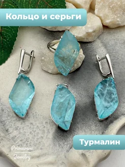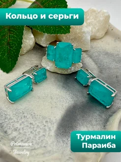Комплект Кольцо и Серьги Турмалин Параиба Голубой