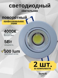 2шт. Встраиваемый диодный светильник 5Вт 4000К Белый