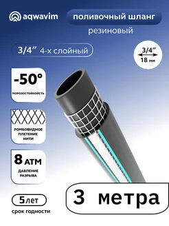Шланг поливочный 3 метра, морозостойкий 3 4 армированный