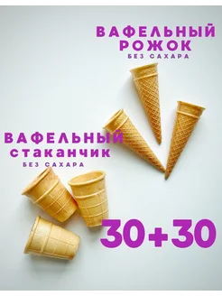 Вафельные стаканчики+рожки для мороженого 60 шт, без сахара
