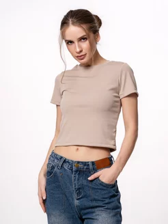 Кроп топ в рубчик с коротким рукавом, в школу под пиджак