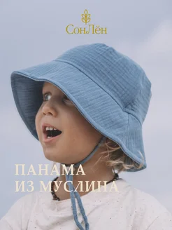 Панама детская Муслиновая с шнурками 46-48, Джинсовая
