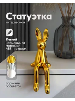Статуэтка зайчик сидячий для интерьера золотой
