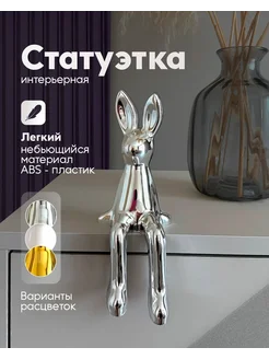 Статуэтка зайчик сидячий для интерьера серебристый