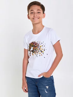 Футболка для подростка мальчика однотонная с принтом хлопок