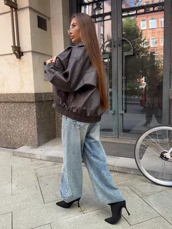 Куртка-бомбер кожаный оверсайз