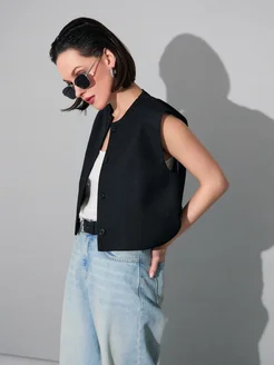 Жилетка костюмная классическая на пуговицах в стиле кимоно