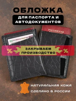Кожаный кошелек бумажник для карт и денег на кнопке