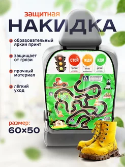 Защита для спинки сиденья "Динозавры красно-желтый фон"