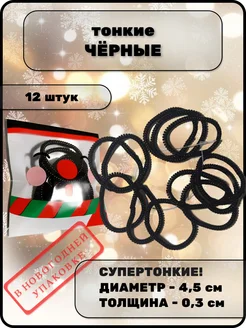 Набор из 12 резинок-пружинок в новогодней упаковке. Черные