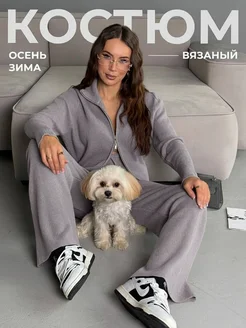 Трендовый костюм шоколадного цвета, вязаный, теплый