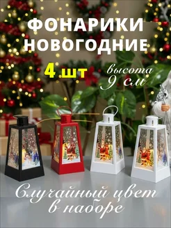 Фонарик новогодний декоративный со снегом набор 4 шт