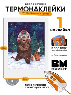 Термонаклейка на одежду медведь с балалайкой