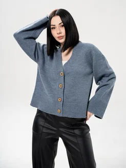 Кардиган оверсайз укороченный вязаный на пуговицах