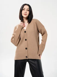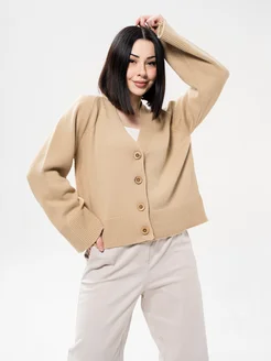 Кардиган оверсайз укороченный вязаный на пуговицах песочный