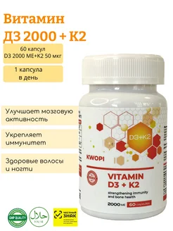 Витамины Д3 2000 МЕ + К2 МК-7 50 мкг D3 + K2 для иммунитета
