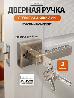 Дверная ручка межкомнатная с защелкой, с замком и ключом