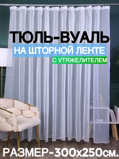 Тюль вуаль в спальную и гостиную длинная 300х250 см белая